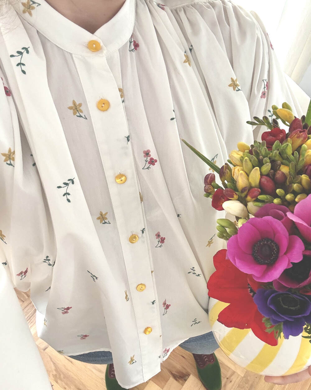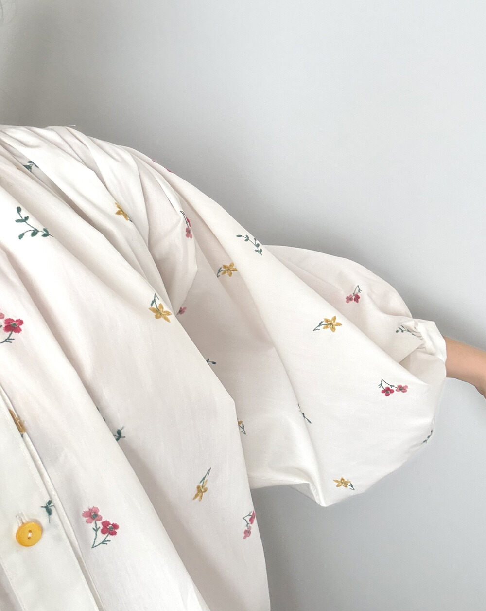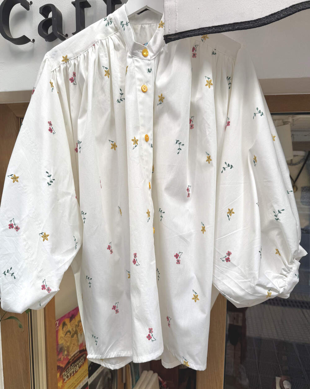 100% Cotton blouse , Buttons closure , Korean collar, wide 3/4 Sleeves .