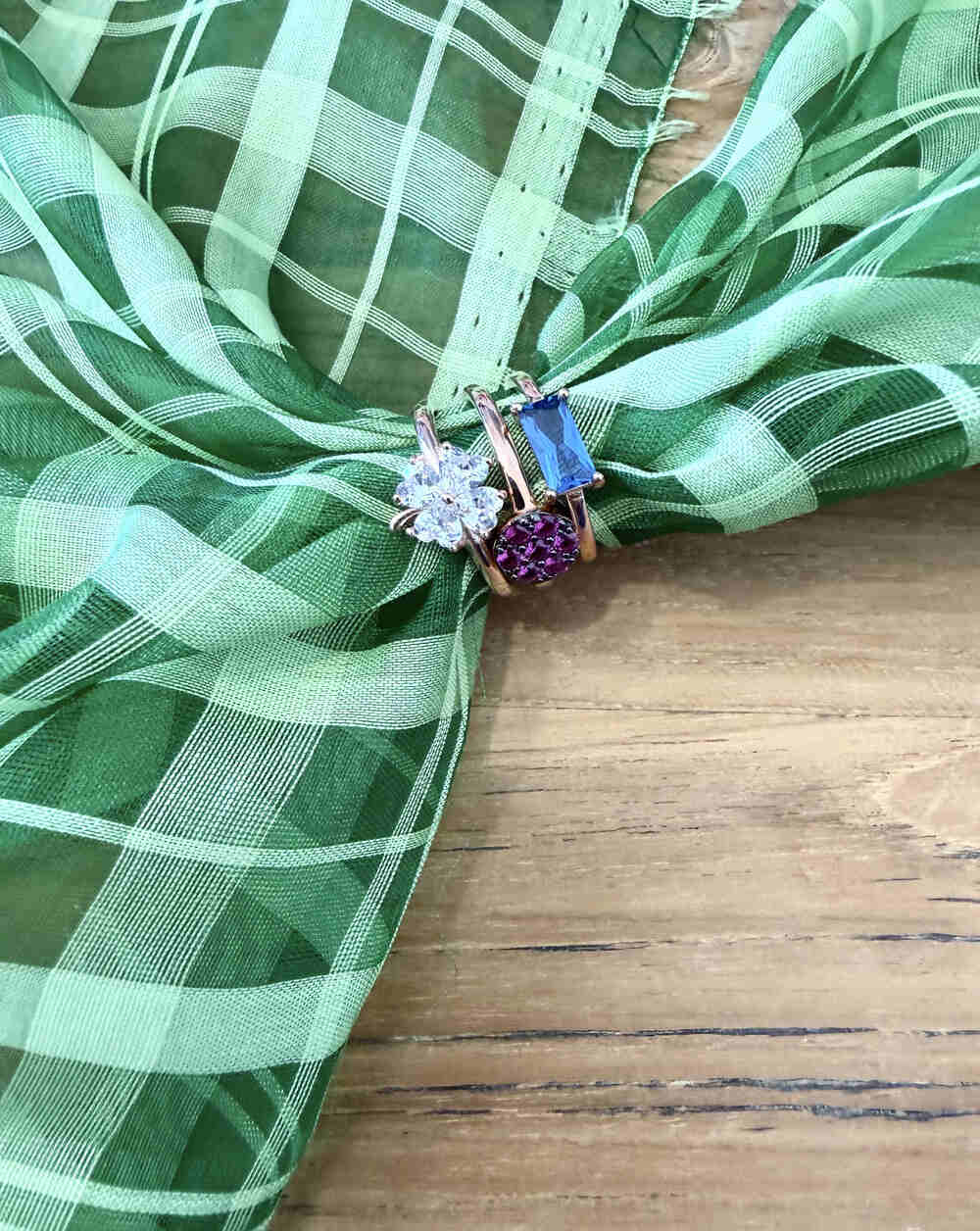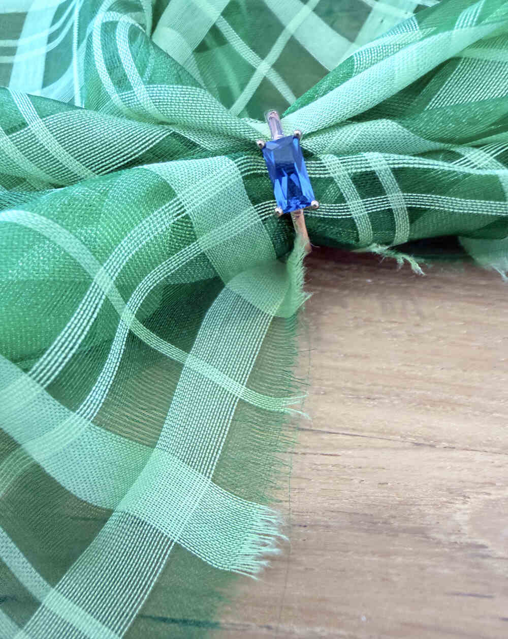 Silver Pleated Pink Gold, Adjustable with rectangular Blue Quartz.